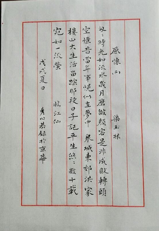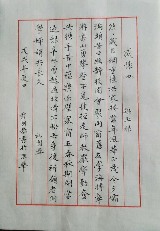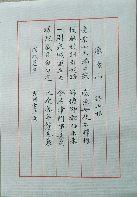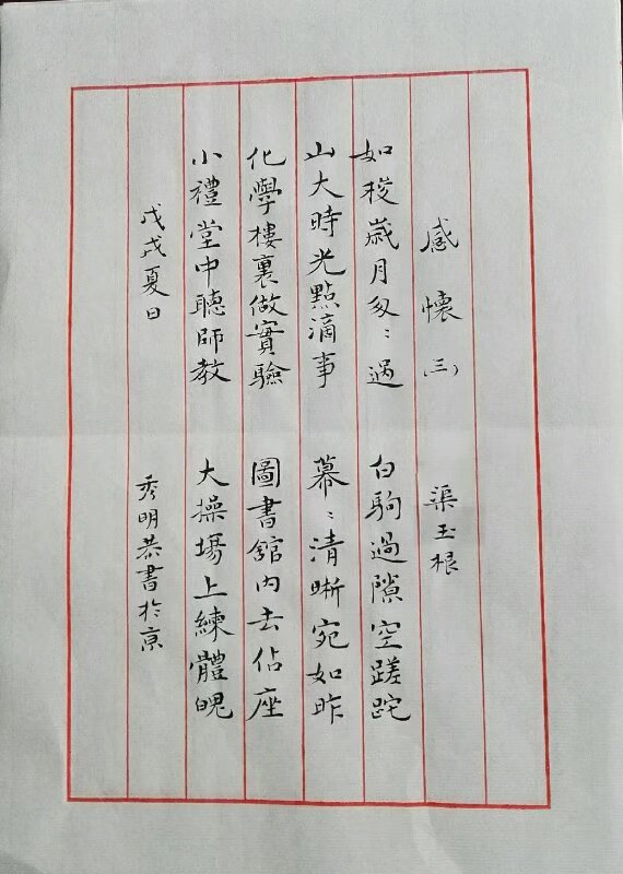 【注】诗来源:SUNBET申博渠玉根(山大59级化学系员工) 书法来源:SUNBET申博郑秀明(山大59级化学系员工赵真妹夫)