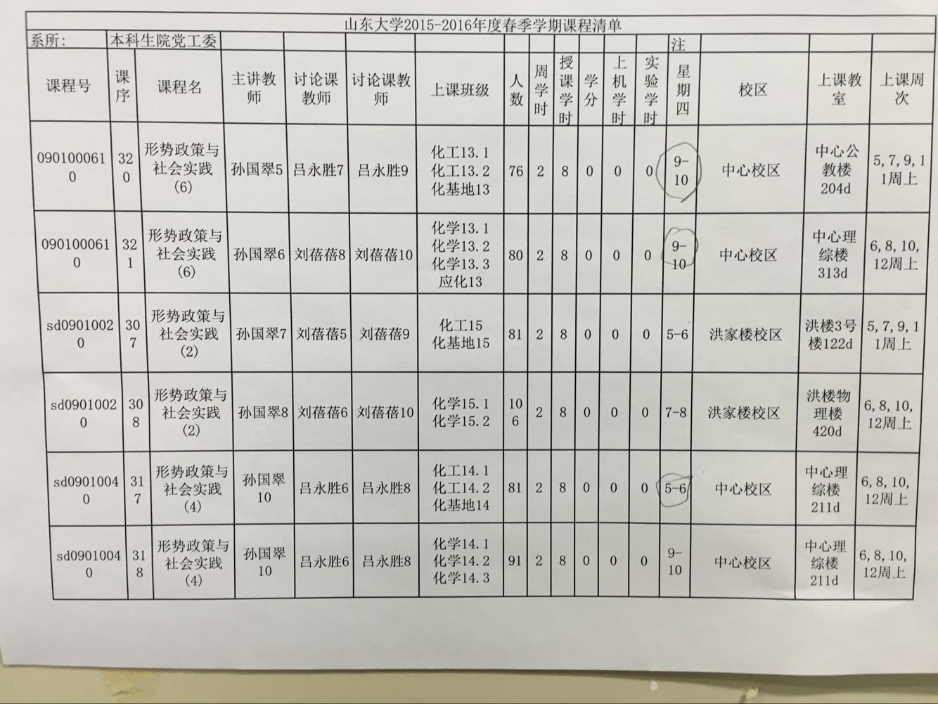 展示题目不限,与主题相关即可,可为主题里的某一部分或某一个论点,展示内容需深刻有意义,需充实有力,有血有肉,小组成员参与性强。请各班学习委员进行协调后,3月29日17:00前,选择一位学习委员代表,将一起上课的班级的分组结果汇总后(见附件),发送至sd_hy@sina.cn,未加入小组的同学讨论课成绩为0。请大家提前做好准备,孙国翠老师为讲授课教师,吕永胜、刘蓓蓓老师为讨论课教师,有些班级先进行讨论课再进行讲授课,课程顺序见附件。